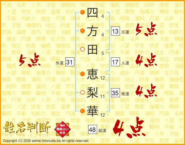 四方田恵梨華さんの外運は31画の5点!