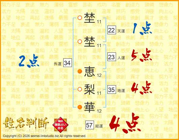 埜(11画)埜(11画) 恵(12画)梨(11画)華(12画)