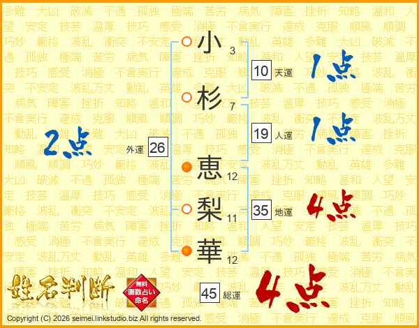 小杉恵梨華さんの総運は45画の4点!