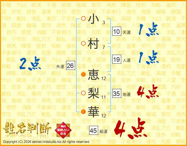小村恵梨華さんの総運は45画の4点!