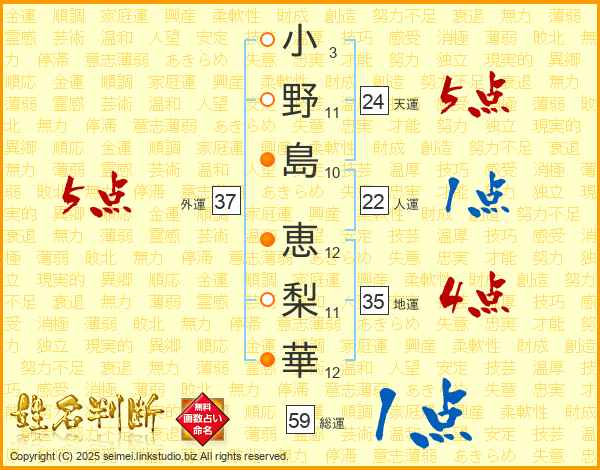 小野島恵梨華さんの外運は37画の5点!