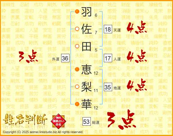 羽佐田恵梨華さんの総運は53画の3点!