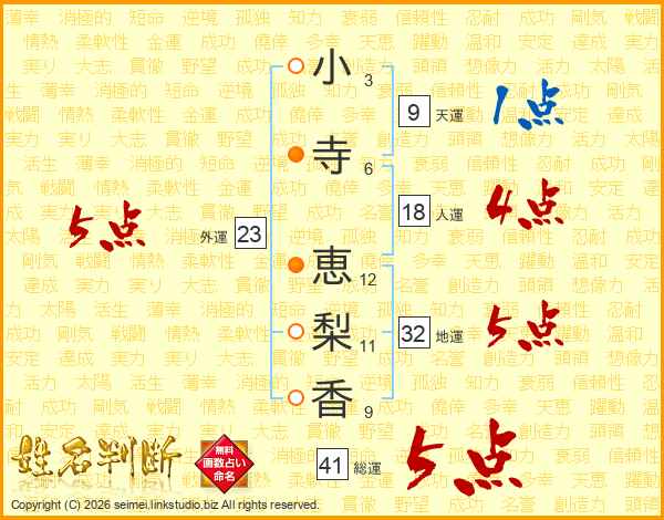 小寺恵梨香さんの総運は41画の5点!