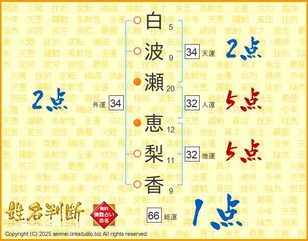 白波瀬恵梨香さんの総運は66画の1点!