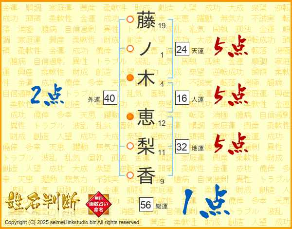 藤ノ木恵梨香さんの総運は56画の1点!