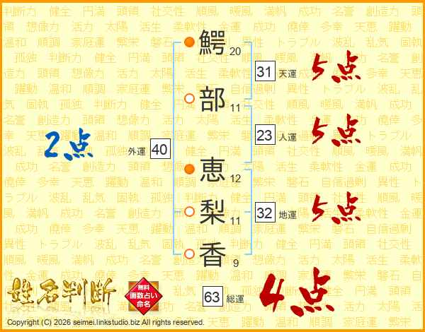鰐部恵梨香さんの総運は63画の4点!
