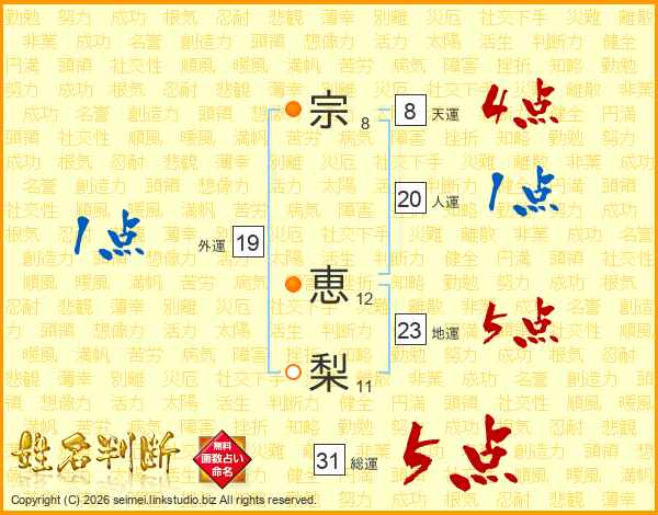 宗恵梨さんの総運は31画の5点!