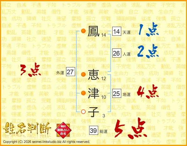 鳳恵津子さんの総運は39画の5点!