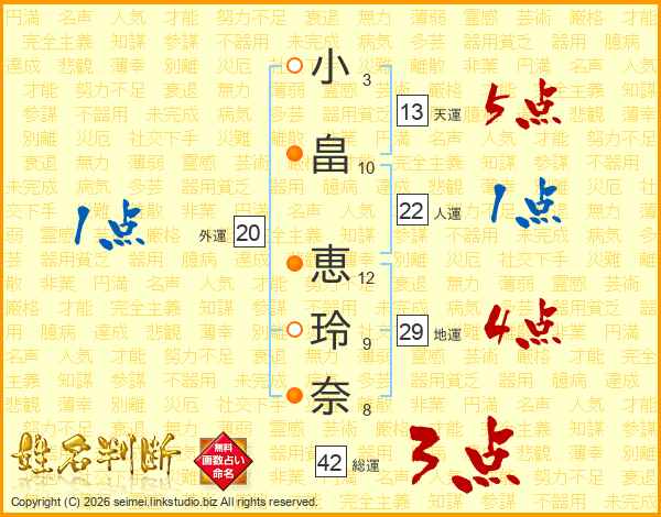 小畠恵玲奈さんの天運は13画の5点!