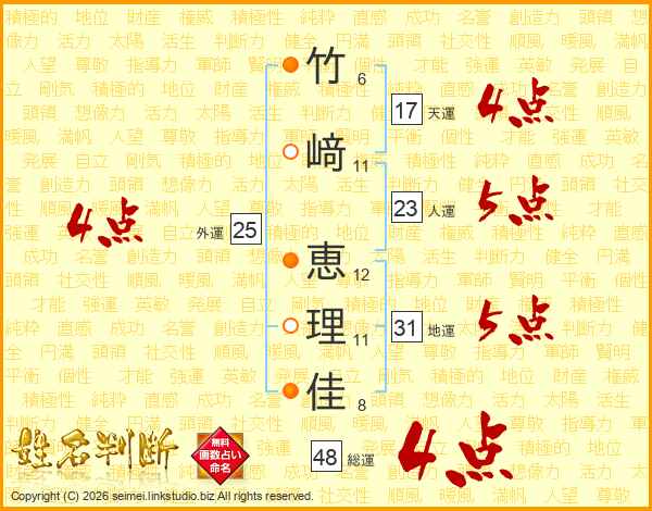 竹﨑恵理佳さんの総運は48画の4点!