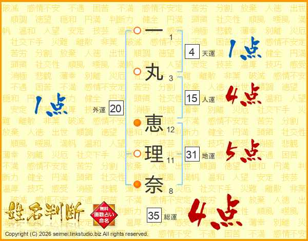 一丸恵理奈さんの総運は35画の4点!