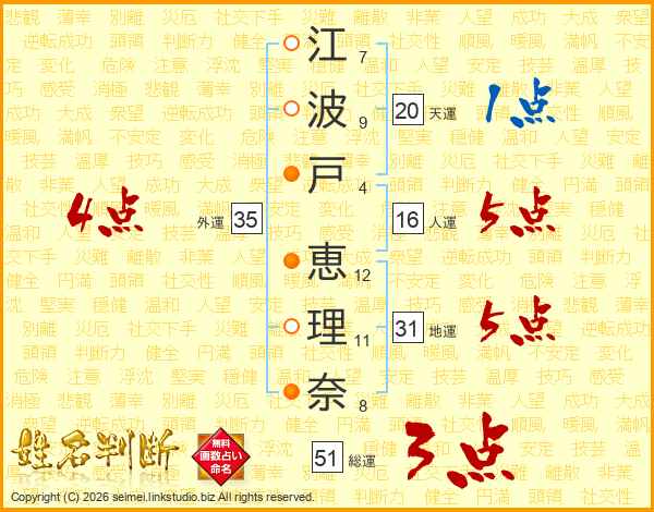 江波戸恵理奈さんの外運は35画の4点!