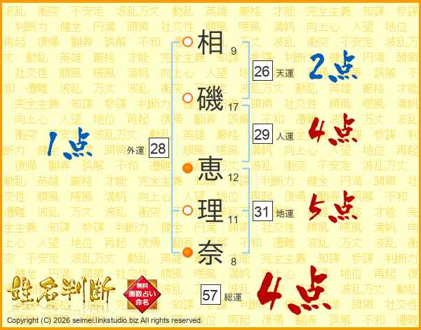 相(9画)磯(17画) 恵(12画)理(11画)奈(8画)