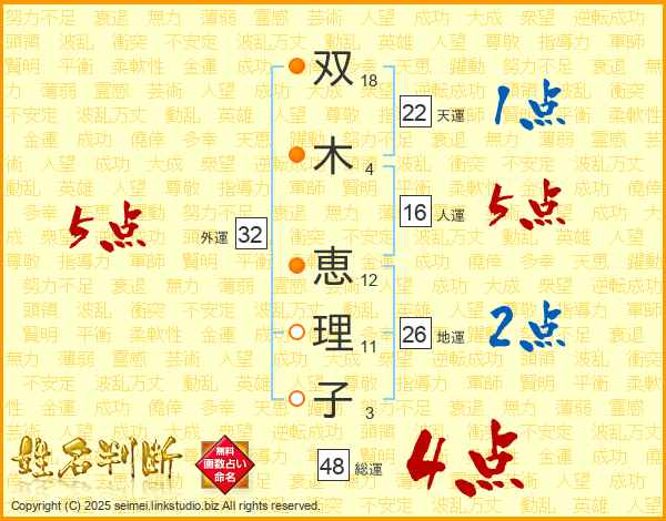 双木恵理子さんの総運は48画の4点!