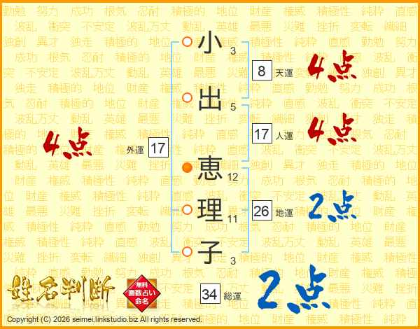 小出恵理子さんの外運は17画の4点!