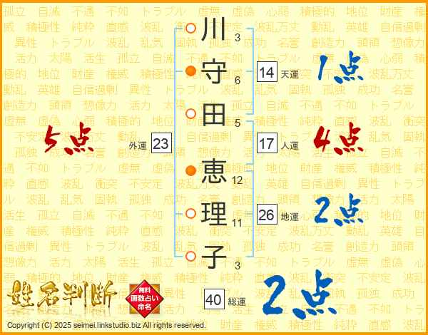 川守田恵理子さんの外運は23画の5点!
