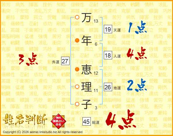 万年恵理子さんの総運は45画の4点!