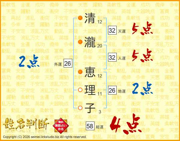 清瀧恵理子さんの総運は58画の4点!