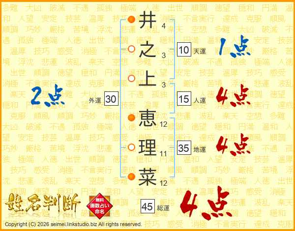 井之上恵理菜さんの総運は45画の4点!