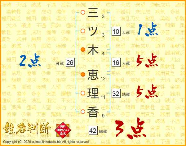 三ツ木恵理香さんの総運は42画の3点!