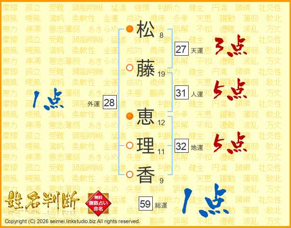 松(8画)藤(19画) 恵(12画)理(11画)香(9画)