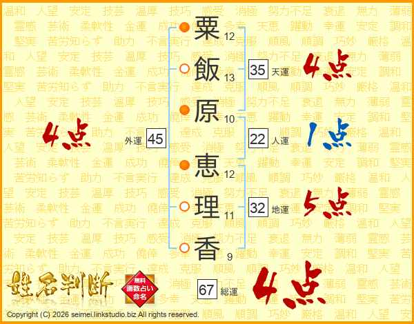粟飯原恵理香さんの総運は67画の4点!