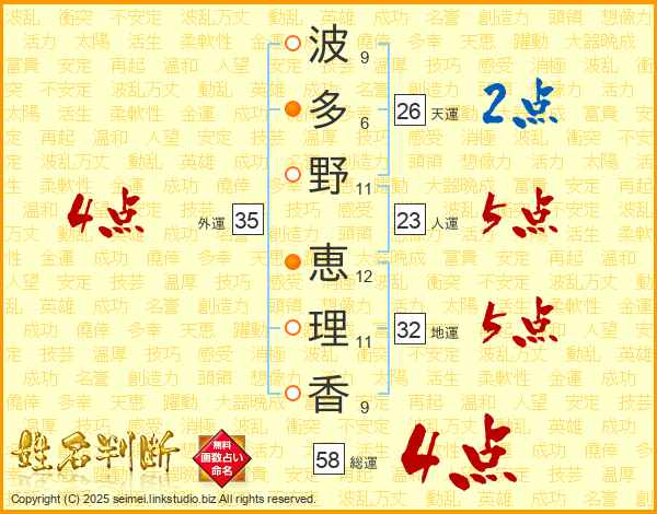 波多野恵理香さんの総運は58画の4点!