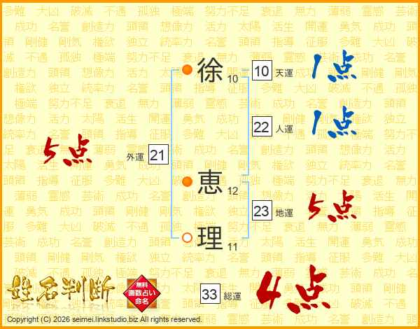 徐恵理さんの総運は33画の4点!