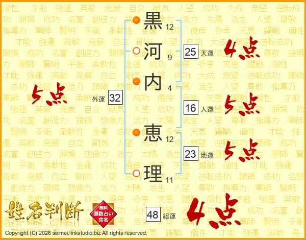 黒河内恵理さんの総運は48画の4点!