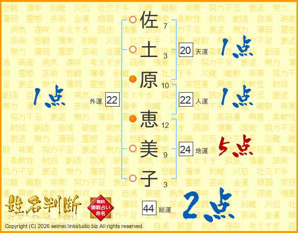 佐(7画)土(3画)原(10画) 恵(12画)美(9画)子(3画)