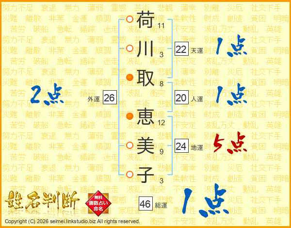 荷川取恵美子さんの総運は46画の1点!