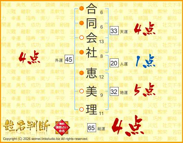 合同会社恵美理さんの総運は65画の4点!