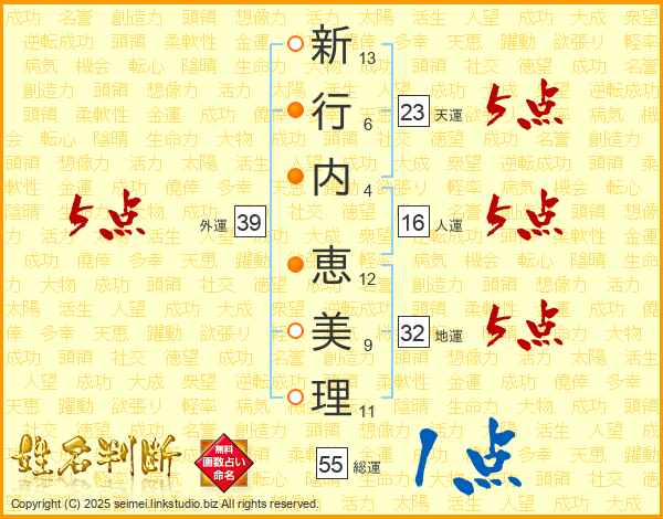 新行内恵美理さんの地運は32画の5点!