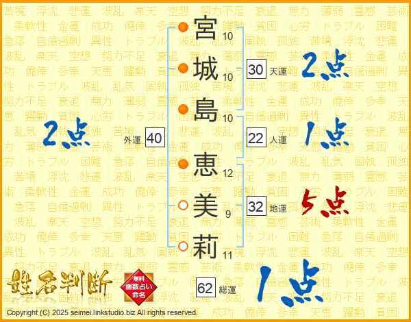 宮城島恵美莉さんの地運は32画の5点!