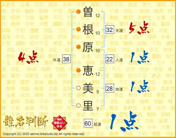 曽根原恵美里さんの天運は32画の5点!