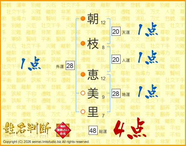 朝枝恵美里さんの総運は48画の4点!