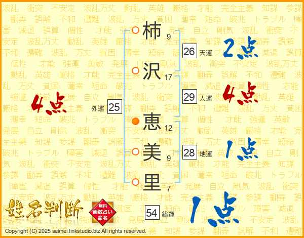 柿沢恵美里さんの天運は26画の2点!