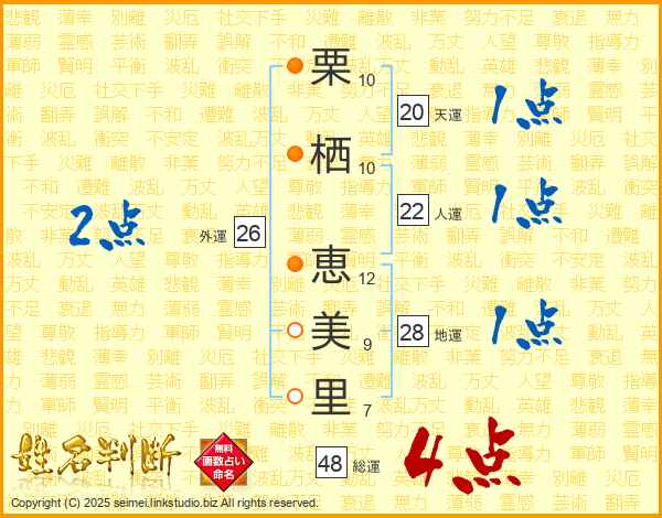 栗(10画)栖(10画) 恵(12画)美(9画)里(7画)