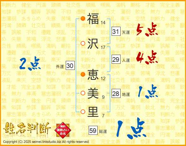 福沢恵美里さんの総運は59画の1点!