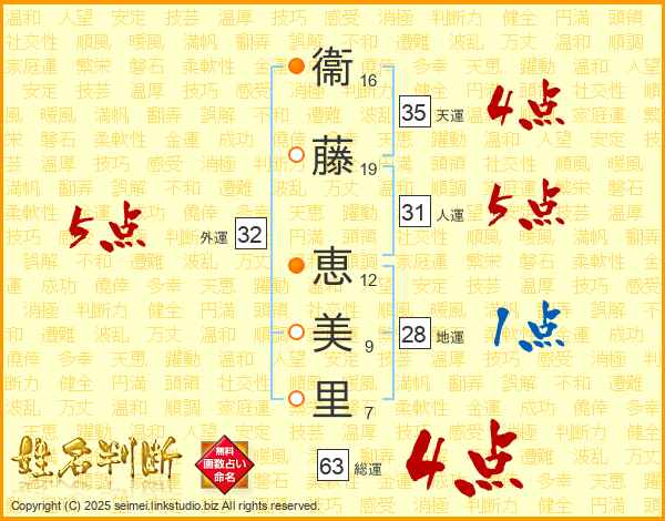衞藤恵美里さんの総運は63画の4点!