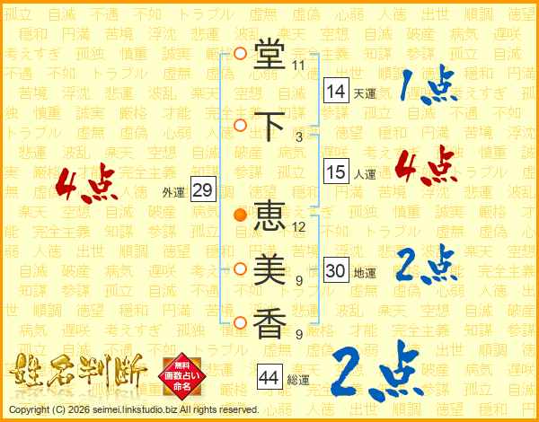 堂下恵美香さんの総運は44画の2点!