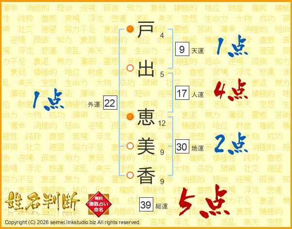 戸出恵美香さんの総運は39画の5点!