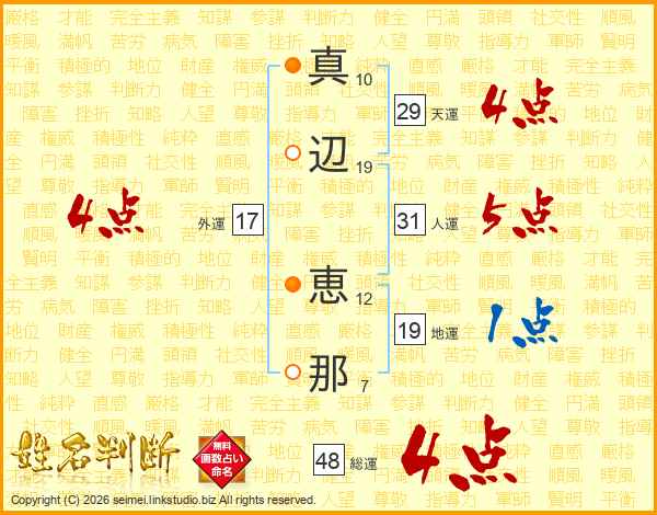 真辺恵那さんの総運は48画の4点!