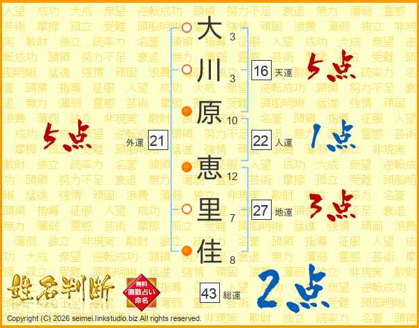 大川原恵里佳さんの総運は43画の2点!
