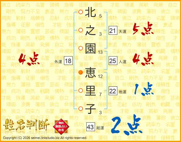 北之園恵里子さんの外運は18画の4点!