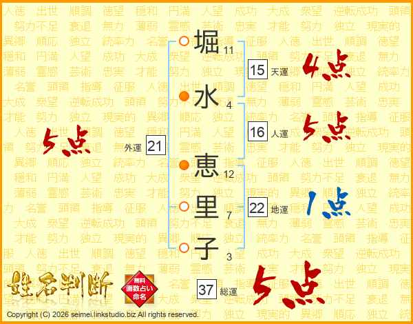 堀水恵里子さんの総運は37画の5点!