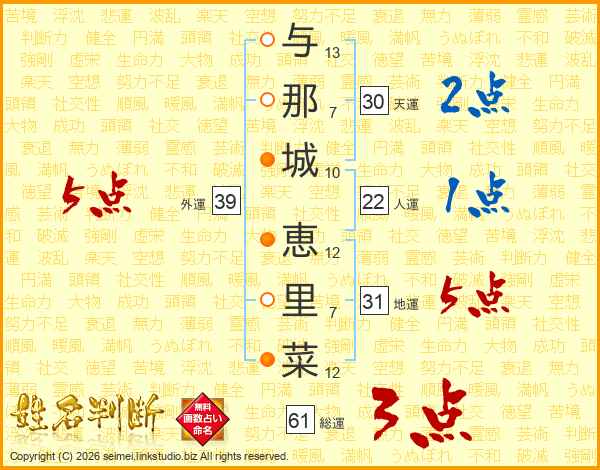 与那城恵里菜さんの外運は39画の5点!