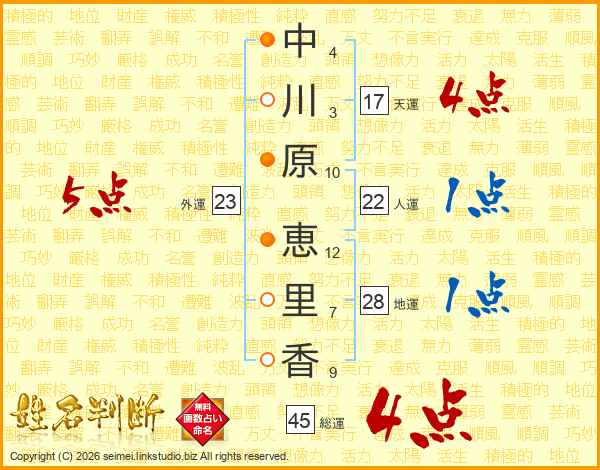 中川原恵里香さんの総運は45画の4点!