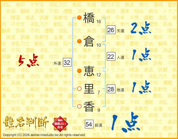 橋倉恵里香さんの外運は32画の5点!