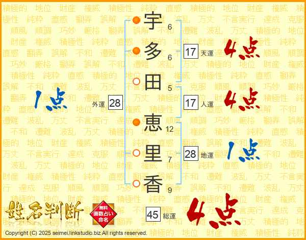 宇多田恵里香さんの天運は17画の4点!